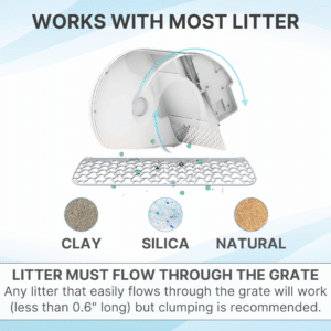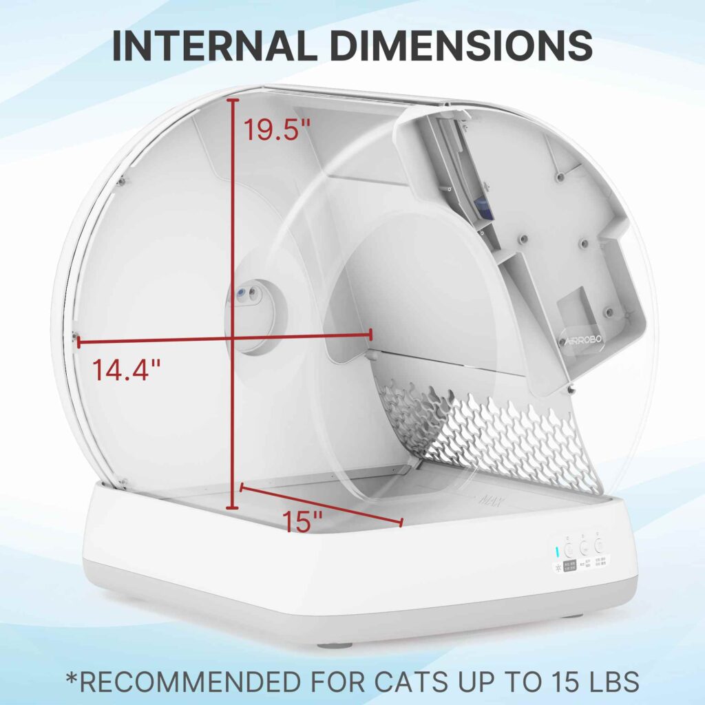 This litter box can be used by all cats and the app can track the usage of up to 6 different cats by their weight. However, it may be too small for larger cats that are heavier than 15 lbs as well as cats that are longer than the average domestic short hair.