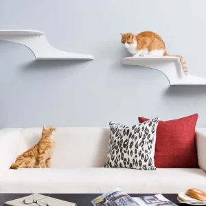 - There are two large platforms on these cat wall shelves which are each 20″ x 10″