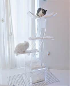 The Crystal Clear Lotus Cat Tower is made in the United States by a master craftsman, skilled in bending acrylic. For you, it’s a piece of art. For your cat, it’s the ultimate luxury cat tower to climb and perch.