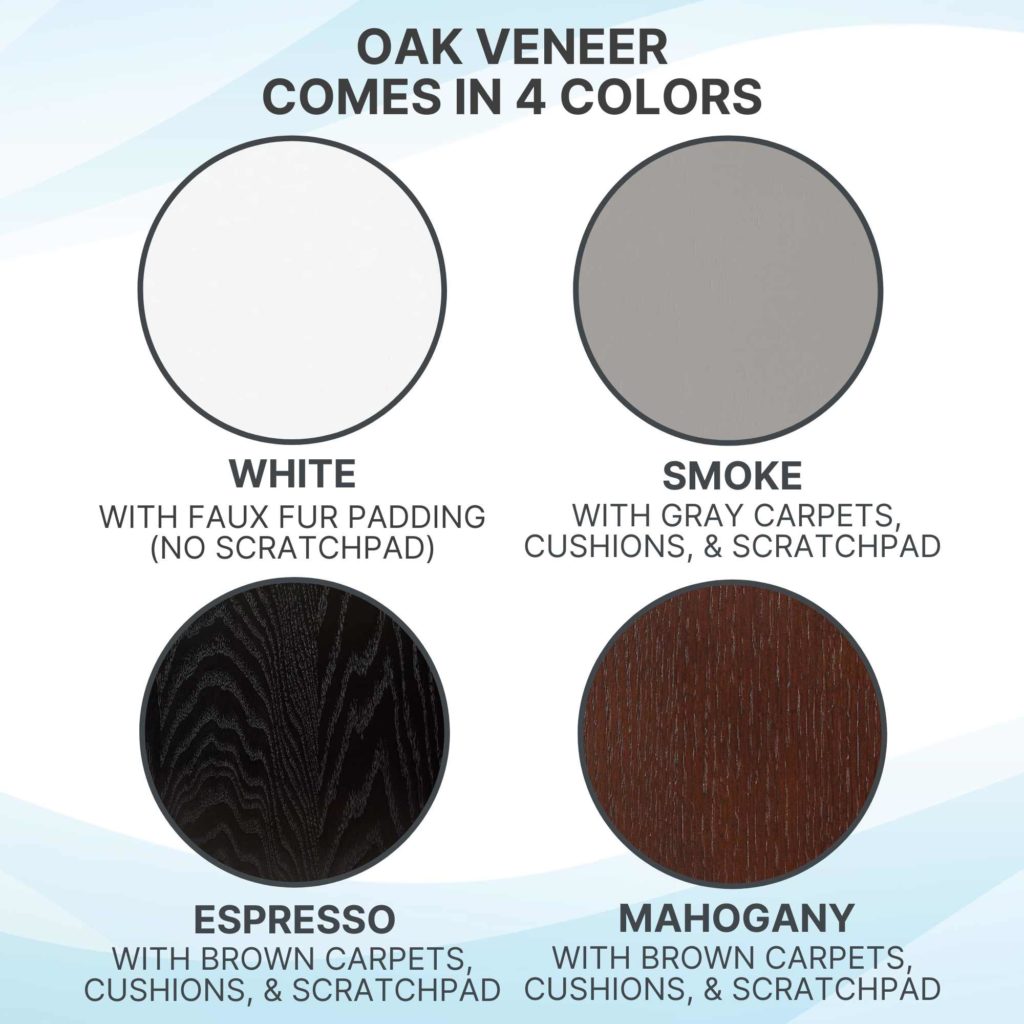 - Wooden cat tree crafted in ply with an oak veneer for extra strength