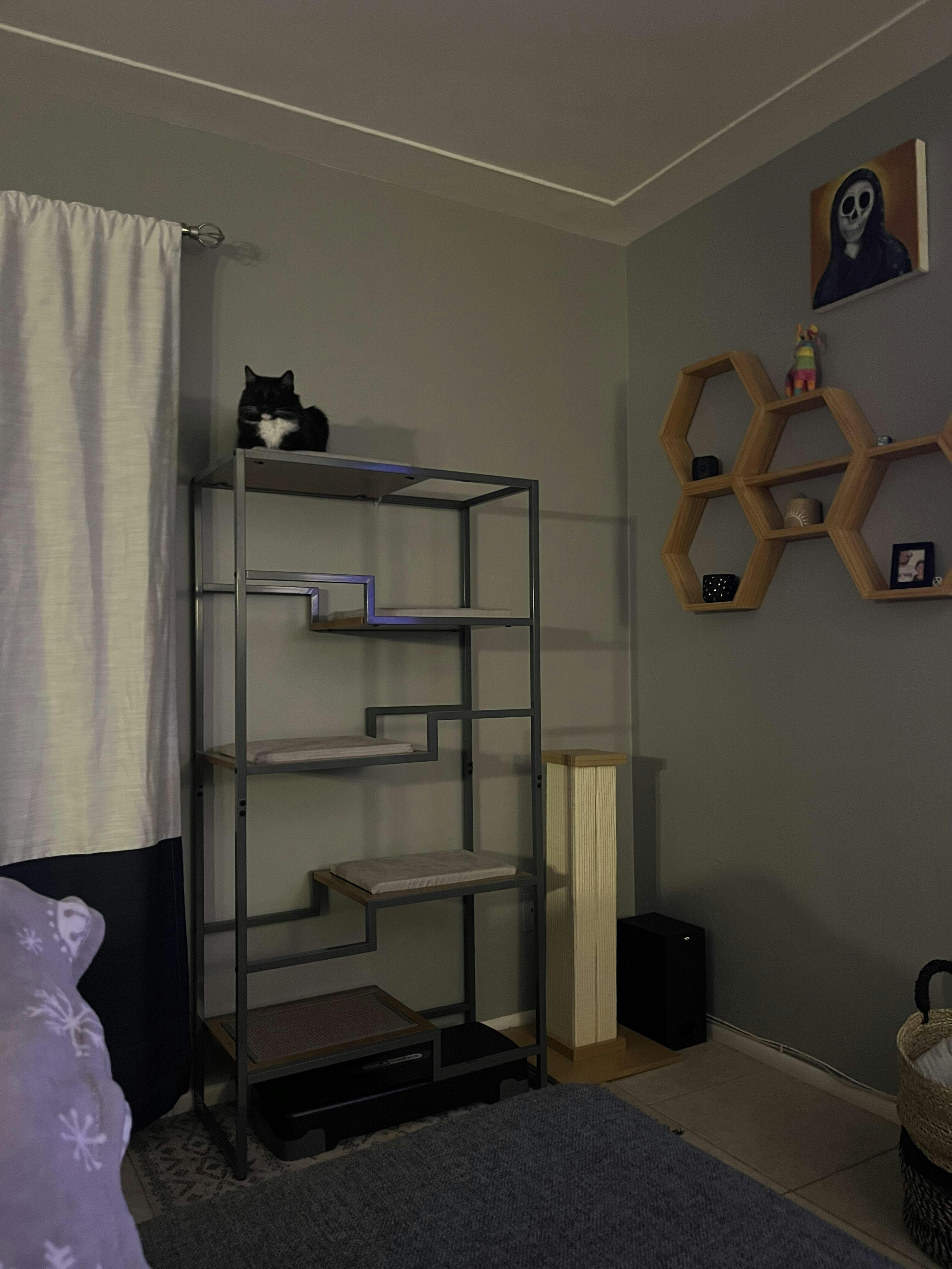 It is best to put a cat tower wherever your cats like to hang out! Usually, that is near a window or wherever their humans like to spend time. We also recommend pairing this cat condo with some cat shelves for your cat to jump up to. This combination of cat furniture will create the ultimate cat room.