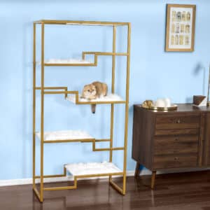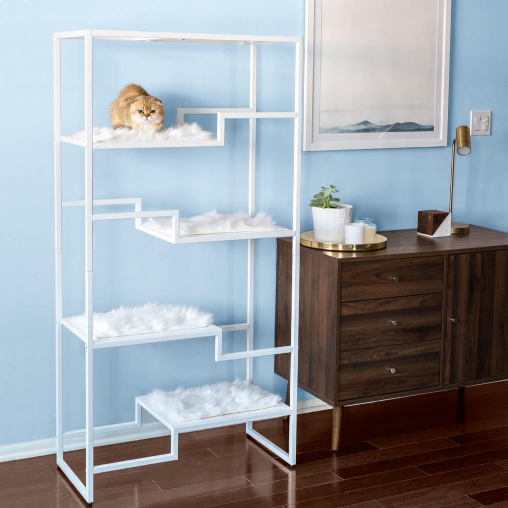 At first glance, this may look like an elegant yet standard metal-framed bookcase. However, your cats will quickly realize the Metropolitan Cat Condo was designed with them in mind. The stepped design of this modern cat tower allows multiple cats to climb atop, as each large, 13" x 18.5" platform provides ample room to perch.