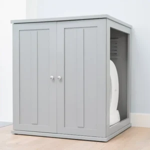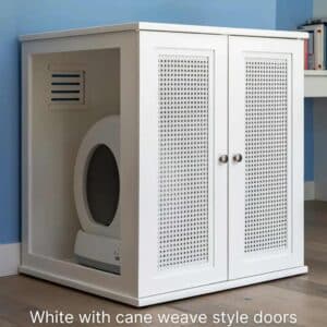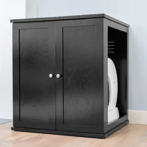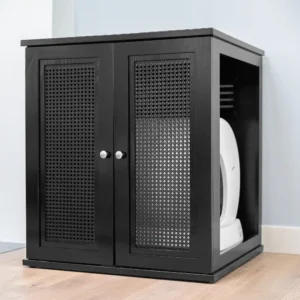 You’ve created a cleaner and easier life for both you and your cat with a self-cleaning litter box. Now make it even tidier with the Refined Self Cleaning Litter Box Cabinet. This modern piece of cat litter box furniture lets you hide your cat’s business behind a cabinet of your design. Choose the color and front panels to create the style that fits best in your home.